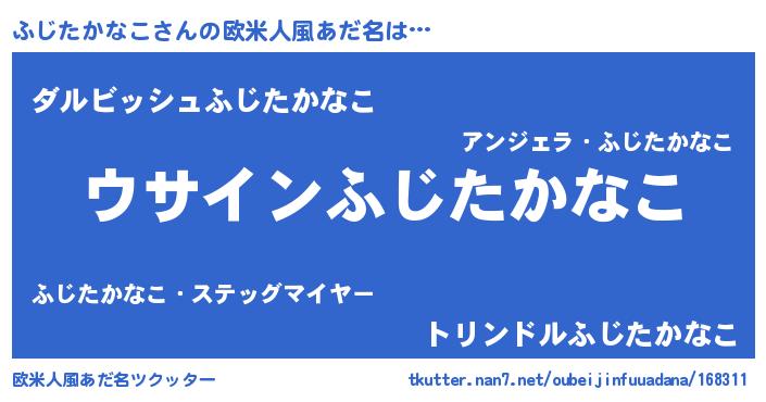 | 男性向けラノベタイトル風あだ名 | 『ふじたかなこの嫁は女の子じゃないと思った?』 |