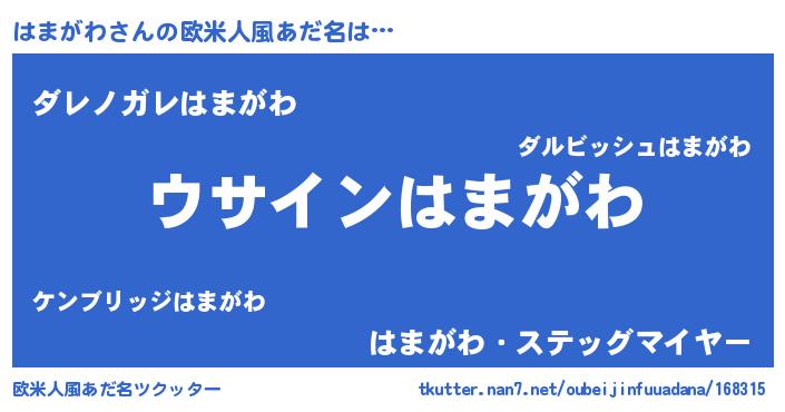 | 女子向けラノベタイトル風あだ名 | 『はまがわは平凡を望む』 |