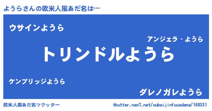 | ヘコむあだ名 | 『ようぷりん』『ようら(遠い目)』 |