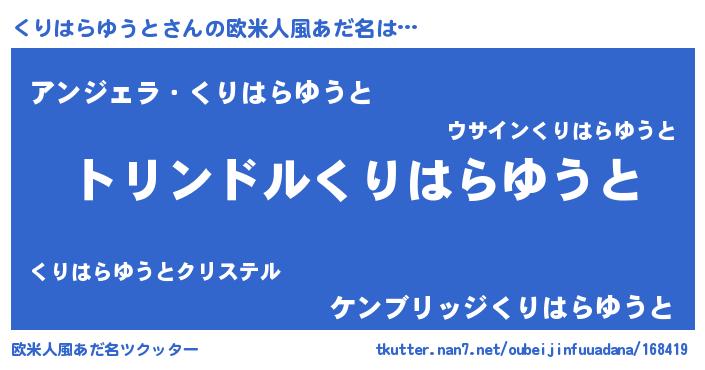 | 男性向けラノベタイトル風あだ名 | 『転生したらくりはらゆうとだった件』 |