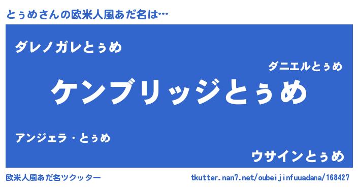 | 意味不明あだ名 | 『自称とぅめ』『住所不定無職とぅめ(56歳)』 |