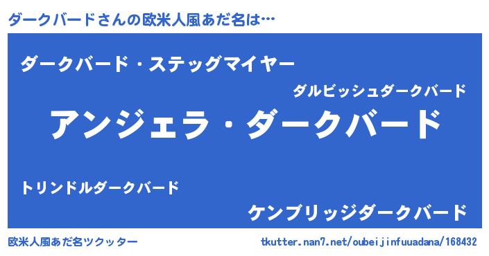 | 男性向けラノベタイトル風あだ名 | 『ダークバードに滅ぼされるだけの簡単なお仕事です』 |