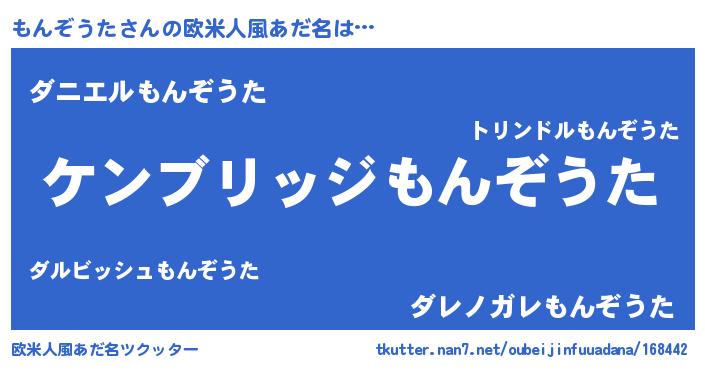 | 意味不明あだ名 | 『自称もんぞうた』『永久保存もんぞうた』 |