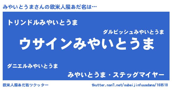 | ヘコむあだ名 | 『みやを』『みやいとうま(笑)』 |