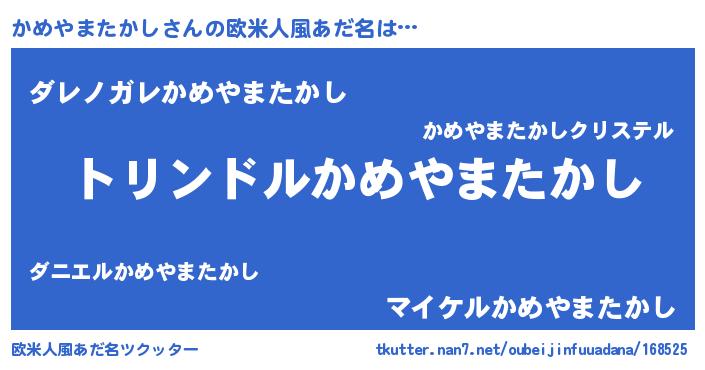 | 男性向けラノベタイトル風あだ名 | 『かめやまたかし~年齢イコール彼女いない歴の魔法使い~』 |