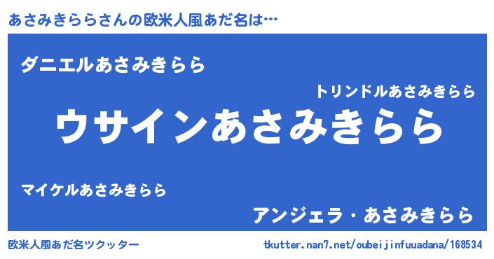 | 男性向けラノベタイトル風あだ名 | 『あさみきららの嫁は女の子じゃないと思った?』 |