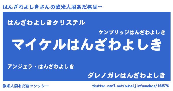 | 男性向けラノベタイトル風あだ名 | 『ハンザワヨシキアートオンライン』 |
