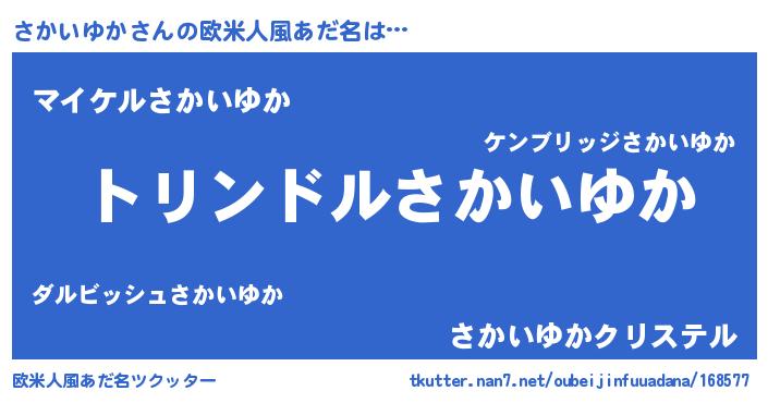 | 女子向けラノベタイトル風あだ名 | 『さかいゆかの玉の輿計画!』 |