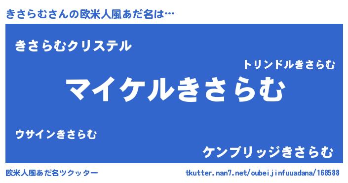 | 胡散臭い通販商品みたいなあだ名 | 『億万長者になれるブレスレット…その名も「きさらむ」』 |