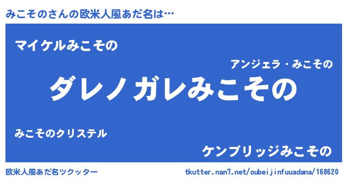 | 意味不明あだ名 | 『住所不定無職みこその(12歳)』 |