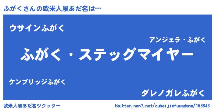 | 男性向けラノベタイトル風あだ名 | 『緋弾のフガク』『魔弾の王とふがく』 |