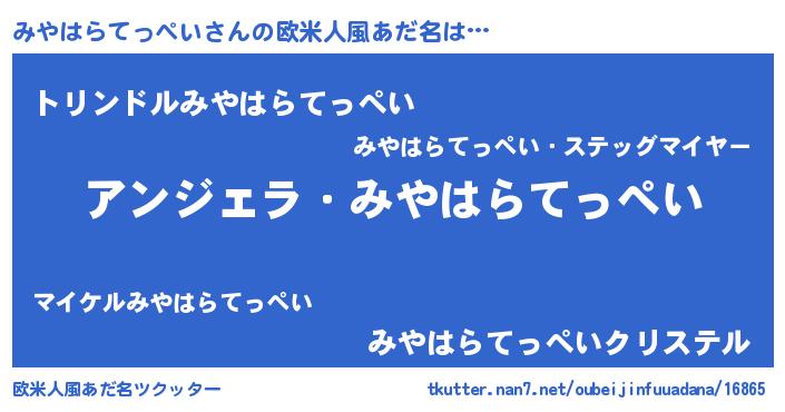 | 男性向けラノベタイトル風あだ名 | 『みやはらてっぺいに滅ぼされるだけの簡単なお仕事です』 |