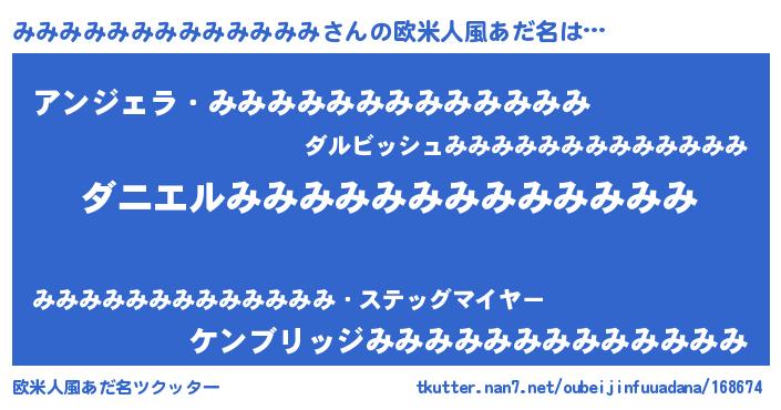 | ヒーロー風カッコイイあだ名 | 『天空の使者みみみみみみみみみみみみみ』 |