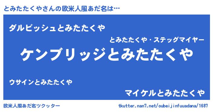 | 女子向けラノベタイトル風あだ名 | 『とみたたくやなんてお断りですっ。』 |