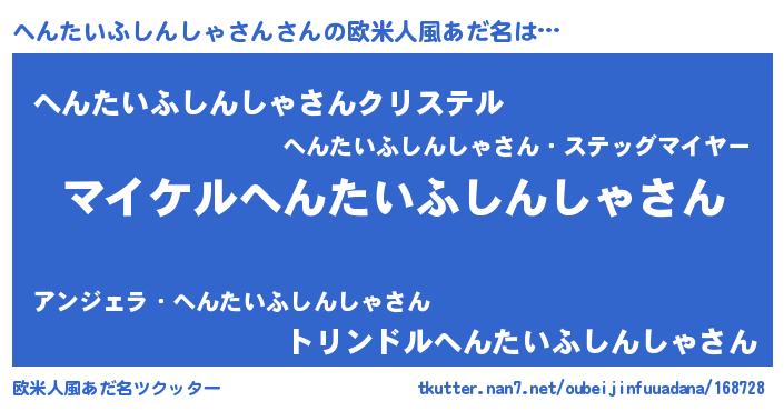 | 胡散臭い通販商品みたいなあだ名 | 『億万長者になれる霊験あらたかなお札…その名も「へんたいふしんしゃさん」』 |
