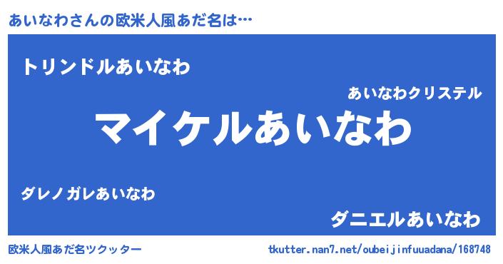| ヒーロー風カッコイイあだ名 | 『スーパーアイナワ』『愛の使者あいなわ』 |