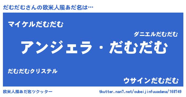 | 男性向けラノベタイトル風あだ名 | 『だむだむに滅ぼされるだけの簡単なお仕事です』 |