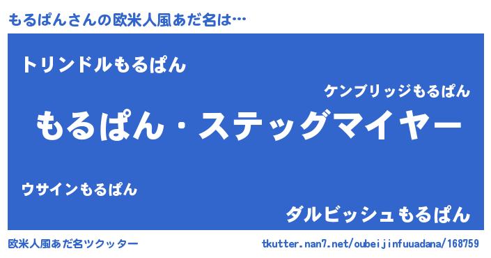 | ヘコむあだ名 | 『もるぱん(苦笑)』『もるを』『牛乳』 |