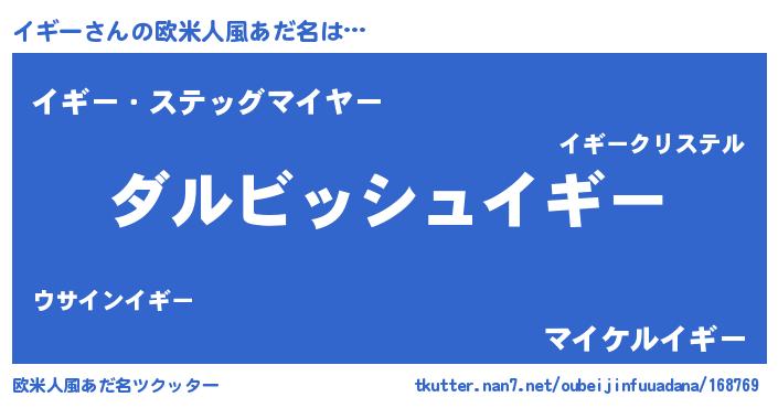 | 男性向けラノベタイトル風あだ名 | 『イギーという概念が存在しない退屈な世界 』 |