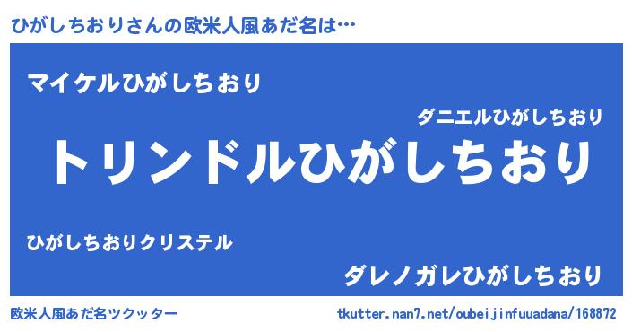 | 男性向けラノベタイトル風あだ名 | 『ヒガシチオリスレイヤー』 |