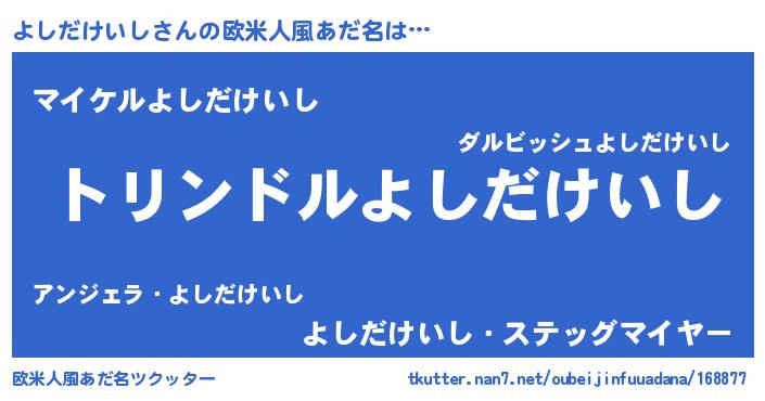 | 胡散臭い通販商品みたいなあだ名 | 『モテモテ間違いなし霊験あらたかなお札…その名も「よしだけいし」』 |