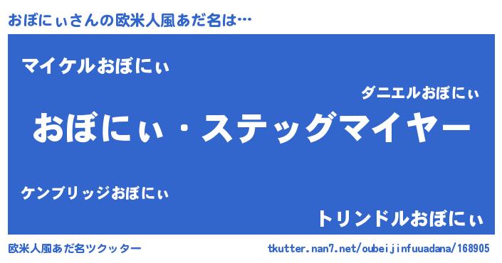 | 意味不明あだ名 | 『ペロリンおぼにぃ』『自称おぼにぃ』 |