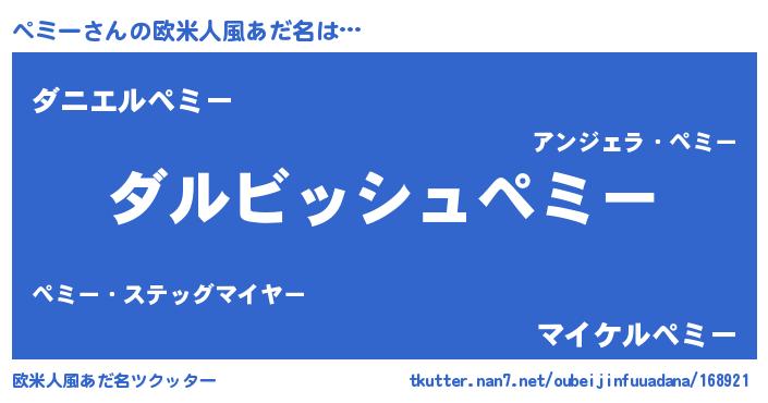 | 男性向けラノベタイトル風あだ名 | 『ペミーという概念が存在しない退屈な世界 』 |