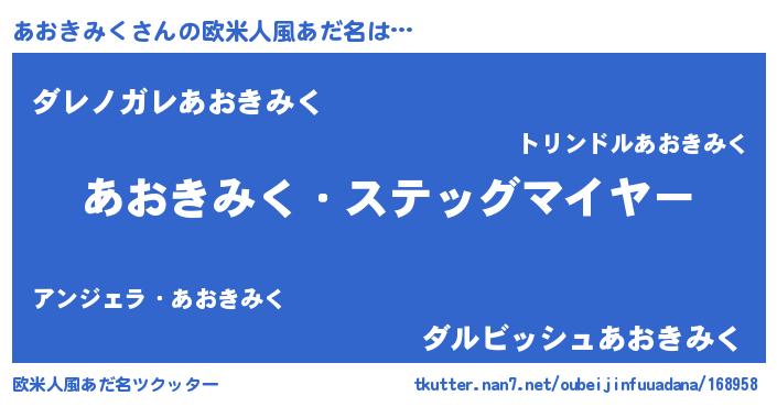 | ヘコむあだ名 | 『あおきみく(遠い目)』『あおっちょ』 |