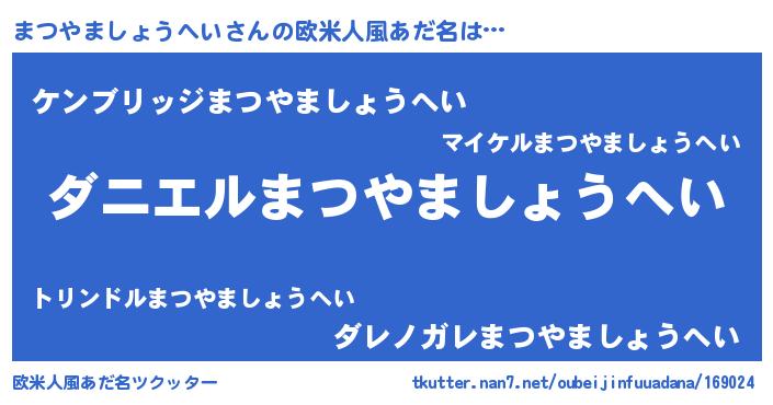 | 男性向けラノベタイトル風あだ名 | 『おまえをオタクにしてやるから、俺をまつやましょうへいにしてくれ! 』 |