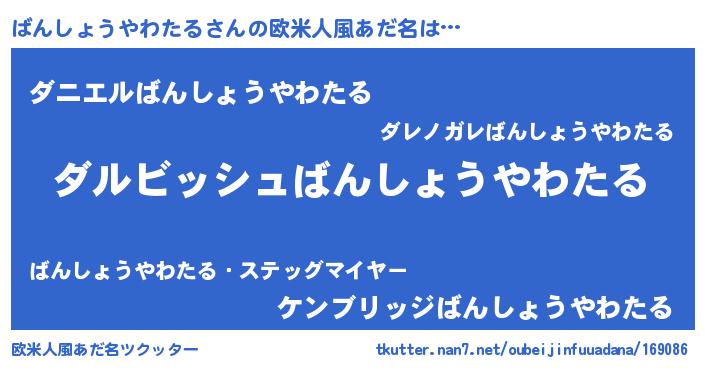 | ヘコむあだ名 | 『ばんしょうやわたる(震え声)』『ばんもー』 |