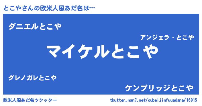 | 男性向けラノベタイトル風あだ名 | 『トコヤアートオンライン』 |