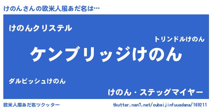 | 男性向けラノベタイトル風あだ名 | 『魔法科高校のけのん』『緋弾のケノン』 |