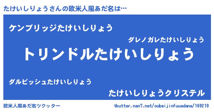 | 女子向けラノベタイトル風あだ名 | 『たけいしりょうの玉の輿計画!』 |