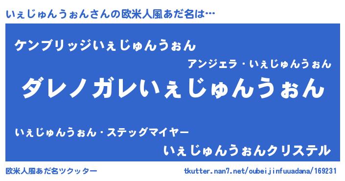 | 意味不明あだ名 | 『住所不定無職いぇじゅんうぉん(74歳)』 |
