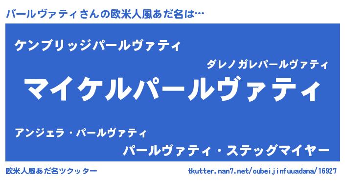 | 男性向けラノベタイトル風あだ名 | 『パールヴァティアートオンライン』 |