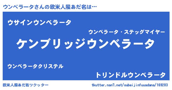 | 女子向けラノベタイトル風あだ名 | 『ウンベラータなんてお断りですっ。』 |