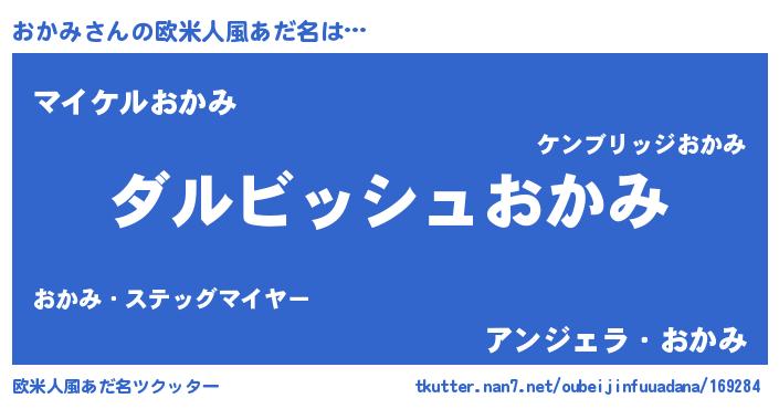 | 男性向けラノベタイトル風あだ名 | 『おかみという概念が存在しない退屈な世界 』 |