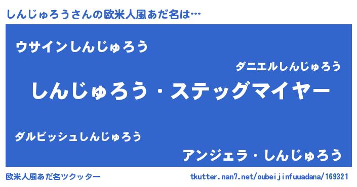 | 男性向けラノベタイトル風あだ名 | 『うちのしんじゅろうが世界を掌握している!』 |