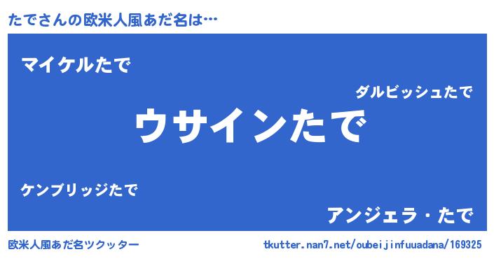 | 男性向けラノベタイトル風あだ名 | 『たでの嫁は女の子じゃないと思った?』 |