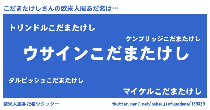 | 男性向けラノベタイトル風あだ名 | 『こだまたけしの嫁は女の子じゃないと思った?』 |