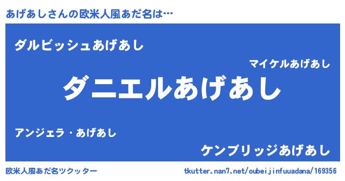 | ヘコむあだ名 | 『あげあし(震え声)』『あげもー』 |