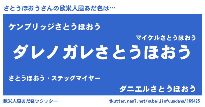 | 男性向けラノベタイトル風あだ名 | 『この素晴らしい世界にさとうほおうを!』 |