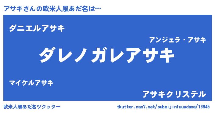| 意味不明あだ名 | 『住所不定無職アサキ(2歳)』『自称アサキ』 |