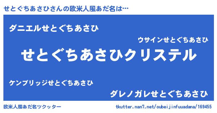 | ファンタジー風あだ名 | 『エターナルセトグチアサヒー』 |