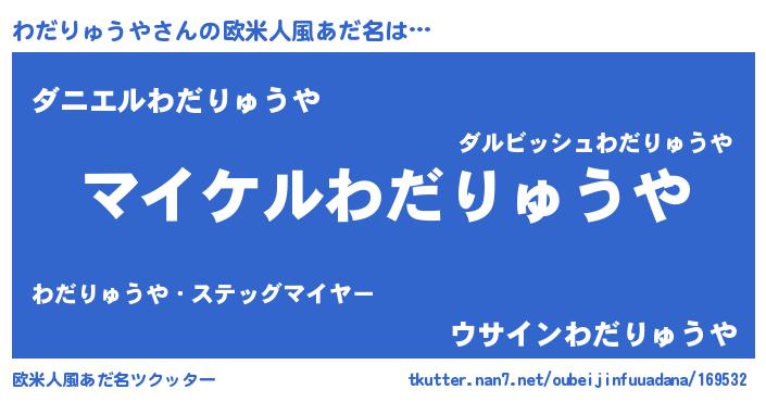 | 男性向けラノベタイトル風あだ名 | 『わだりゅうやの憂鬱』 |