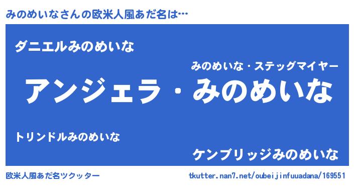 | 男性向けラノベタイトル風あだ名 | 『みのめいなに滅ぼされるだけの簡単なお仕事です』 |