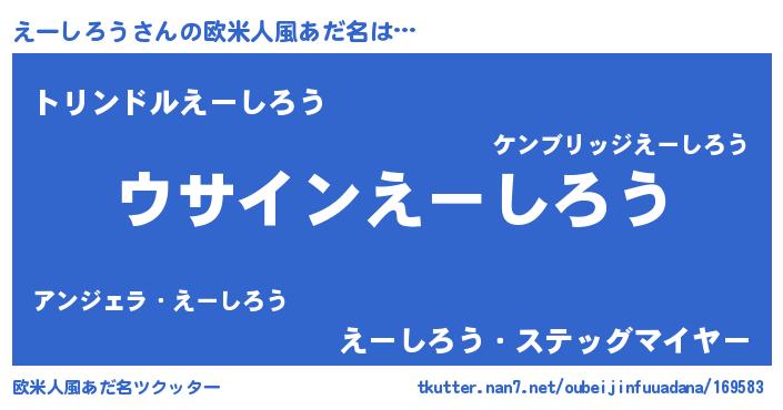 | 男性向けラノベタイトル風あだ名 | 『ダンジョンにえーしろうを求めるのは間違っているだろうか』 |