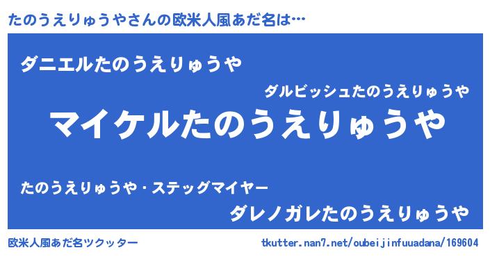 | 男性向けラノベタイトル風あだ名 | 『たのうえりゅうやの憂鬱』 |