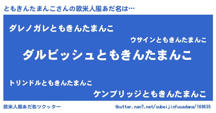 | 男性向けラノベタイトル風あだ名 | 『ともきんたまんこという概念が存在しない退屈な世界 』 |