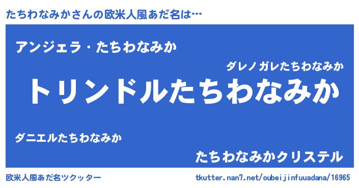 | 男性向けラノベタイトル風あだ名 | 『たちわなみか~年齢イコール彼女いない歴の魔法使い~』 |